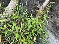 • Billardiera cymosa subsp. pseudocymosa (F.Muell. ex Klatt) L.W.Cayzer & Crisp, (previously known as Billardiera pseudocymosa F.Muell. ex Klatt[11] has leaves 30–50 mm (1.2–2.0 in) long and 3–6 mm (0.12–0.24 in) wide, the sepals 3–4 mm (0.12–0.16 in) long, and the ovary glabrous.[12][13]