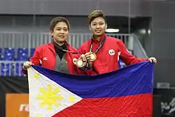 Rubilen Amit (left) and Chezka Centeno (right) of the Philippines. Centeno won gold for her country in the women's 9-ball pool singles while her compatriot, Amit settled for silver.