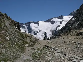 The Birnlücke (2,665 m (AA)) is the border pass at the western end of the Hohe Tauern mountains in Austria, between the Venediger Group and the adjoining Zillertal Alps. The border between Austria and Italy has run over the pass since 1919. The pass forms the border between the Austrian state of Salzburg and the Italian province of South Tyrol, the valleys of the Krimmler Achental and Ahrntal, and the Rieserferner-Ahrn Nature Park and Hohe Tauern National Park.