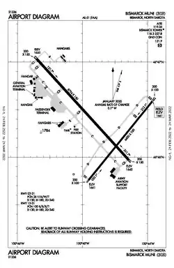 3. ^ "Bismarck Municipal (BIS)". Airport Directory. North Dakota Aeronautics Commission. Retrieved August 13, 2013.