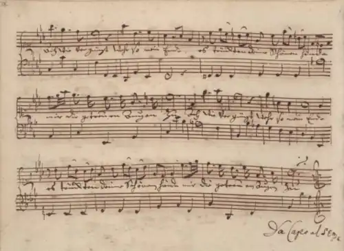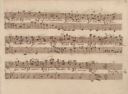 No. 25, "Bist du bei mir", BWV 508, belongs to the second category, along with another dozen pieces of vocal music in the 1725 notebook. Most of these other vocal compositions (BWV 509–518, 299 and 82/2–3) can, according to the 1998 edition of the Bach-Werke-Verzeichnis (BWV), be attributed to Johann Sebastian.[54] Doubts about this attribution have however arisen regarding following arias and sacred songs: