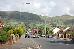 Black Mountain is a large hill which overlooks the city of Belfast, Northern Ireland. With a height of 1,275 ft (389 m),[1] it towers over most of west Belfast and is part of the Belfast Hills. Its name is probably derived from the adjoining mountain called Divis (/ˈdɪvɪs/; from Irish Dubhais 'black ridge'), and they may have been seen as one mountain in the past.[2] Black Mountain transmitting station is on the summit.