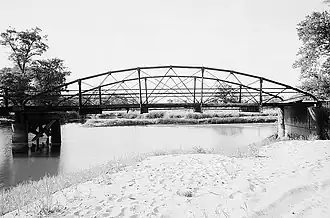 A ferry operated by Alex McGilvray crossed the river near La Crosse, starting in 1861. This was supplanted by a series of seven bowstring truss bridges were built during 1891-92 to bring a La Crosse County road through backwaters of the Black River and then cross the Black River itself, connecting the city of La Crosse with rural Trempealeau County.[16]
