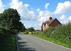 The parish contains one building designated by English Heritage as a listed building. This is Blakenhall Farmhouse, which is listed at Grade II.[30] Grade II is the lowest of the three gradings given to listed buildings and is granted to "buildings of national importance and special interest".[31] The farmhouse dates from the 17th century, and is constructed in brick with a tiled roof. It is in two storeys, and has a three-bay entrance front with three gabled dormers. Inside the farmhouse is an inglenook with a bressumer.[30] A red-brick former Wesleyan Methodist chapel in Blakenhall village dates from 1900.[2]