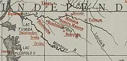 As of 1 January 1894 the Société anonyme belge pour le commerce du Haut-Congo (SAB) had 83 factories and posts, including some in the French territory to the west of the Congo and Ubangi rivers. A map shows the company had posts along the upper Ruki River (i.e. the Busira) at Bilakamba, Bombimba, Bussira Manene, Moniaca, Bocoté and Yolongo. It also had a post at Bomputu on the Lengué (Salonga) River, and posts at Balalondzy, Ivulu and Ivuku on the Momboyo River.[1] The post at Monieka formally established in 1901.[2]