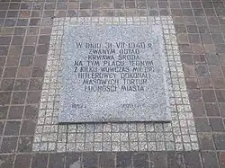 Bloody Wednesday commemorative plaque at Market Square in Olkusz
