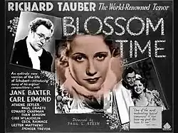 Blossom Time is a 1934 British musical drama film directed by Paul L. Stein and starring Richard Tauber, Jane Baxter and Carl Esmond. It was based on the opera Blossom Time by Heinrich Berté.[1]