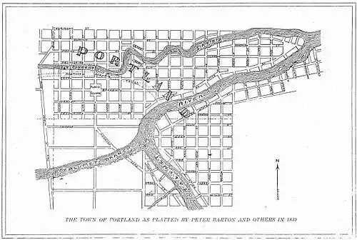 This sketch was derived from the plat of Portland which was registered by Peter Barton with the state of Illinois on April 13, 1839.