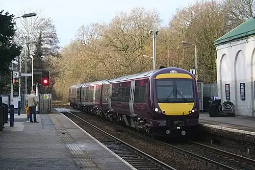 On weekdays and Saturdays, the station is generally served by an hourly service westbound to Crewe via Stoke-on-Trent and eastbound to Newark Castle via Derby and Nottingham.[4] During the late evenings, services terminate at Nottingham instead of Newark Castle.