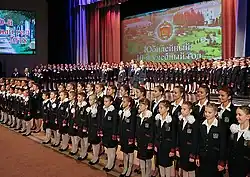 The school was established in 2008 as part of the Strategy for the Social Development of the Armed Forces of the Russian Federation. The daughters of servicemen are trained in the boarding school from 5th to 11th grade, annually accepting 120 girls who are of at least 11 years of age. At the end of the school year, many girls have the choice of attending military and civilian universities in Russia and abroad. At the moment, more than 50 clubs (choreographic, vocal, musical, sports, theatrical, cooking, journalism, drummers group, and others) are active in the school. After classes on weekdays, as well as on weekends and holidays, the girls together with their educators make trips to the city, visiting theaters, museums, exhibitions and parks in Moscow. The clothes that cadets wear are sewn by famed Russian stylists such as Kira Plastinina and Valentin Yudashkin, while physical education exercises are developed by the Cosmonaut Preparation Center.[1][2][3][4][5]