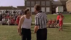 • This episode wrongly reports the location of the University of Rhode Island (URI), claiming that it is in Providence when, in fact, it is in Kingston on the other side of the state. While URI has a satellite campus (the Feinstein Campus) in Providence, URI's sports teams play in Kingston.