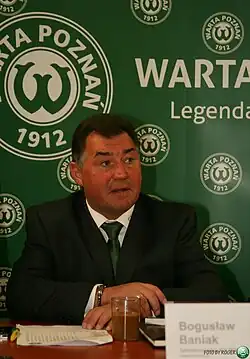 Boguslaw Stanisław Baniak (born 23 September 1958), nicknamed Bebeto[1][2] is a Polish professional football manager and former player who was most recently in charge of Polish club Olimpia Grudziądz.[3] Besides Poland, he has managed in Burkina Faso and Uzbekistan.[4][5][6][7]