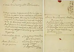 Letter from Franciszek Bogusławski to regimentar Józef Zaremba from 1770, collection of the Kórnik Library