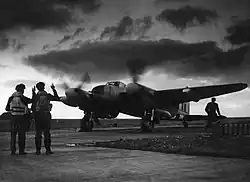 A Lancaster stands ready to launch into the night