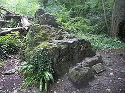 The Bonchurch Landslip was developed as a picturesque woodland walk in Victorian times, with natural features including the Devil's Chimney, the Chink, and the Wishing Seat (a.k.a. Wishing Stone, a large moss-covered rock by the path).[6][7]