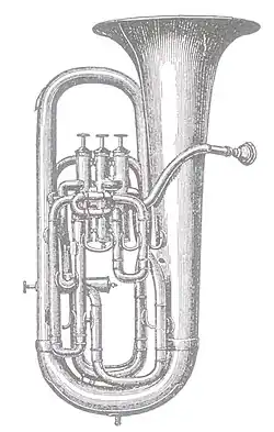 A drawing of a euphonium manufactured by Boosey & Co. in 1878