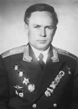 Boris Dmitrievich Kabishev (Russian: Борис Дмитриевич Кабишев; 17 October 1922 – 5 December 1998) was a Soviet Air Defence Forces (PVO) Lieutenant general and Hero of the Soviet Union. Kabishev flew the Ilyushin Il-2 in combat from July 1943, making 112 sorties and shooting down an enemy aircraft. For these actions he received the title Hero of the Soviet Union. After the war Kabishev held command positions in the Soviet Air Force and graduated from the Air Force Academy and Military Academy of the General Staff. After graduation from the Military Academy of the General Staff, Kabishev led the 3rd Air Defense Corps[1] and 11th Air Defence Army, as well as advising the Polish Country Air Defence Force. Before retirement in 1980, Kabishev served as the deputy commander of the PVO for combat training. After retirement, Kabishev lived in Moscow and worked at the USSR State Committee for Hydrometeorology.[2]