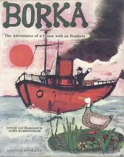 Borka: The Adventures of a Goose with No Feathers is a children's picture book written and illustrated by John Burningham and published by Jonathan Cape in 1963. [1] It features a goose born without feathers, whose mother knits a jersey that helps in some ways.[1]