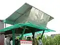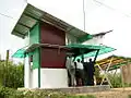 This small building was therefore conceived as a public and paying fountain, as well as a food outlet. In particular, the roof reflects the style of the ephemeral building, created by the artist Jesús Palomino, in the workshop Bessengue City organized by Goddy Leye and theart center ArtBakery.[1]