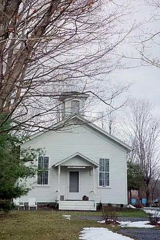 Borodino District School #8, known previously as Borodino District School #11, was listed on the National Register of Historic Places in 2007.[1] The one-room schoolhouse was probably built between 1853, when the property was sold to the school trustees, and 1859 when it first appears on a map of Borodino. It is a clapboard building in the Italianate style topped by a square cupola with a gabled roof. The interior is a single room with a twelve-foot ceiling. The walls and ceiling are beaded board. Two chalkboards are still in evidence. The school closed in 1956, probably due to the lack of running water and proper toilet facilities required by law after that time.[2]