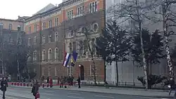 Building of the Presidency of Bosnia and Herzegovina during a visit of the president of Croatia, Kolinda Grabar-Kitarović in 2018.