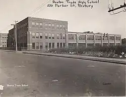 The Boston Trade High School for Boys was a high school that was located in Roxbury, Boston. It was founded in 1929 and closed in 1970.[1] The building was acquired by Wentworth Institute of Technology and called The Annex. Since 1984, the building has been hosting classes for Wentworth students and currently houses Wentworth’s Design and Facilities, Architecture, and Civil, Construction and Environment Departments.[2]