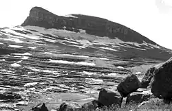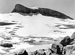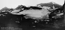 Boulder Glacier was far larger when this image was taken in 1910. Compare to the image in the infobox upper right.