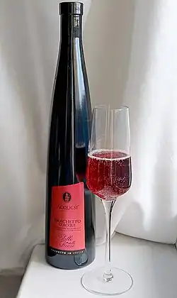 Brachetto d'Acqui (Italian: [braˈketto ˈdakkwi]; Piedmontese: brachet d'Àich [braˌkɛt ˈdɑjk]) is a red Italian wine that is classified as a Denominazione di Origine Controllata e Garantita (DOCG) since 1996 and previously a Denominazione di Origine Controllata (DOC) region since 1969. It is produced in the Piedmont wine region around Acqui Terme in the province of Alessandria with some overlap into the province of Asti. The wine is produced from the Brachetto grape, a variety that is believed to be native to Piedmont, and can be still or sparkling with usually some sweetness.[1]