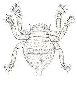 Braula is a genus of flies (Diptera) in the family Braulidae. These are very unusual flies, wingless and flattened, and barely recognizable as Diptera. Braula coeca Nitzsch is a pest of honey bees. The larvae tunnel through the wax honeycomb and the adults are found on the bodies of honey bees. There is some debate whether the bee louse causes damage to the honey bee. These flies sometimes can be found at places where bees congregate such as flowers or salt licks, waiting to grab onto hosts from uninfested nests.[6] Braula is cosmopolitan and about 1.6 mm in length.