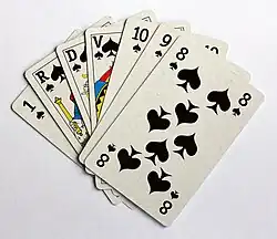 ![]() Suit of Spades from a 28-card French-suited pack | |