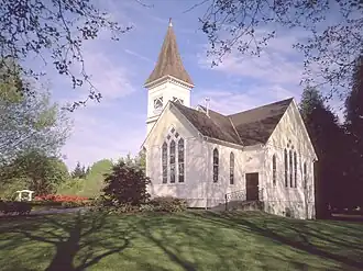 When a 1912 fire destroyed the town hall,[6] opinion was divided regarding rebuilding by Brighouse Station on the BCER MarpoleSteveston interurban tram line.[7] In 1919, Michael traded four acres of land near the station, the present City Hall site, and regained the original five acres sold in 1880.[1]