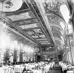 The Dining Hall was built in 1890 in the block bounded by San Martín, Rivadavia, Boulevard Marítimo and Entre Ríos.[2] This is the block where the Bristol Center building stands today.[3] It was a U-shaped building in Italian style, facing the sea. The ceiling of the dining room was considered the most luxurious in Latin America. In addition to the dining room it contained the festival room and the roulette room.[2] It also held the large Pueyrredon Club Lounge.[4] Over the years the building was modified with the addition of corridors, terraces, balconies and basements.[2]