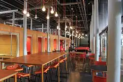 Engine Shed is a new use for part of the Old Station, Brunel's original building, in partnership with the University of Bristol.[1] Opened in December 2013,[6] it hosts business incubators, including SETsquared and WebStart Bristol, which support a cluster of hi-tech startup companies.[7] Engine Shed leases its office space to the incubators, who in turn sub-let space on more flexible terms to the companies, which are selected for their high growth potential, and high expected benefits for the regional economy.[6] In December 2015, with the building fully occupied, additional space was made available in the form of Boxworks, which was rapidly constructed by ForwardSpace next to Engine Shed using 20 shipping containers. This was intended to be a temporary solution until an Engine Shed 2 is built.[8] Public consultation for Engine Shed 2 took place in November 2016.[9]