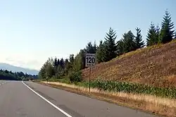 The 128 km (80 mi) stretch of Highway 19 between Campbell River and the city of Parksville is known as the Inland Island Highway. The highway completely avoids any residential or urban areas and alternates between a divided four-lane expressway and freeway, with a nominal speed limit of 110 km/h (68 mph) and a 90 km/h (56 mph) speed limit near signal lights.