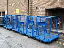 Unlike traditional station trolleys, they were loaded each with parcels for a particular destination and wheeled into the train. This saved train waiting time and cut down on handling. They were used until the Red Star Parcels service was discontinued in 1999.