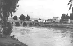On 19 November, Hill visited the commanding officer of the French forces guarding a vital bridge at Medjez el Bab, and warned him that any attempt by German forces to cross the bridge would be opposed by the battalion. Hill attached 'R' Company to the French forces to ensure the bridge was not captured. German forces soon arrived at the bridge, and their commanding officer demanded that they be allowed to take control of the bridge and cross it to attack the British positions. The French rejected the German demands, and in conjunction with 'R' Company repelled subsequent German attacks that lasted several hours.[45] The battalion was reinforced with the American 175th Field Artillery Battalion and elements of the Derbyshire Yeomanry, but despite fierce resistance the German forces proved to be too strong, and by 04:30 on 20 November the Allied forces had yielded the bridge and the surrounding area to the Germans.[46] Two days later, Hill received information that a strong Italian force, which included a number of tanks, was stationed at Gue Hill.[47] Hill decided to attack the force and attempt to disable the tanks, and the following night moved the battalion, less a small guard detachment which remained at Béja, to Sidi N'Sir where it linked up with a force of French Senegalese infantry. Hill decided that the battalion's section of 3 inch mortars would cover 'R' and 'S' Companies as they advanced up Gue Hill and attacked the Italian force, while a small force of sappers would mine the road at the rear of the hill to ensure the Italian tanks could not retreat.[48]