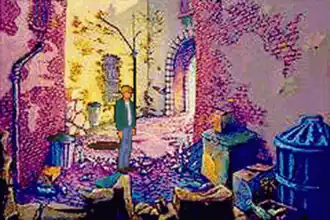 Where the original Broken Sword: The Shadow of the Templars used Revolution's Virtual Theatre engine, this game created a new engine for this title. While designing the game, they prioritized parts of the original that were the most vital to implement first, then as space permitted added less vital aspects. The backgrounds used JPEG image compression, and the design team had to cut them down and compress them even more to make them fit on the cartridge.[3] Head of game development Francesco Iorio noted that the uncompressed images alone would have taken up 7MB of space, and through their efforts, the graphics were reduced in size to only 1.95MB.[8] JPEG compression was chosen due to how well-suited it is for detailed images, as well as its power and flexibility. When compressing background images, they set the backgrounds' global quality level as low as they reasonably could, and then cleaned up any artifacts that appeared when the images were decompressed.[8] When picking the graphics mode for the game, they went with a screen mode that supports 256 colors due to its compatibility with the game's art style.[8]