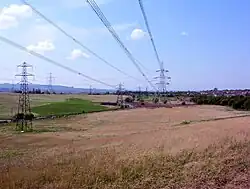 A large quarry and landfill occupy the land to the west (some of which is in the process of being reclaimed as a community woodland).[1][2] The North Calder Water, which flows into the River Clyde nearby, is the eastern boundary of the neighbourhood as well as that of Glasgow, with North Lanarkshire and the M73 motorway beyond.