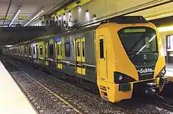 The 300 Series cars were initially ordered for Line H in 2012 with an initial order of 120 cars at a cost of US$ 216 million. These were to be delivered in 2015 and produced solely in Alstom's plant in São Paulo, unlike the 100 Series which also had components produced in Argentina.[1] These were to be put into service once the Córdoba, Santa Fe and Las Heras stations were opened.[2]