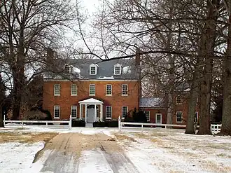 In 1935, the Estate was subdivided to 600 acres (240 ha) and purchased by Charles McAlpin Pyle, grandson of industrialist David Hunter McAlpin.[14] The manor house was renovated with the great kitchen replaced by a "Stirrup Room" where meetings of the Howard County Hunt Club took place.[15] The house was sold in 1941 to Mrs. Anthony J. Drexel Biddle, Jr. for the use of Prince Alexandre Hohenlohoe of Poland and his wife, Peggy Schulze during World War II. St. Timothy's School bought the property after the war in 1946, but abandoned plans and sold to George Dudley Iverson IV and his wife Juliet Proctor Goldsborough Iverson in 1950.[16] Iverson embarked on an extensive restoration effort to return the house back to its colonial appearance.[17] The brick was once painted yellow, but by 1956, had almost returned to exposed red brick.[4] As of 2013, it has operated as a livestock shelter.[18]
