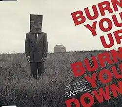 "Burn You Up, Burn You Down" is a song co-written and performed by English rock musician Peter Gabriel. The initial recording sessions were conducted at Gabriel's Real World Studios in 1991, although the song would remain unreleased for another decade. Gabriel originally intended for the song to appear on his 2002 Up, but he ultimately pulled it from the track list shortly before the album's release. It was instead included on Gabriel's Hit compilation album the following year and released as a single, where it charted in both Italy and the UK. An alternate mix of "Burn You Up, Burn You Down" was also included on Big Blue Ball in 2008.