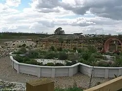 Construction began at the site at Chiswell Green, adjacent to the Gardens of the Rose, in 2009. Terra Firma landscape architects worked with client Clive Farrell, artist and garden designer Ivan Hicks and Chrysalis Architects on the project masterplan and detailed proposals.[3]