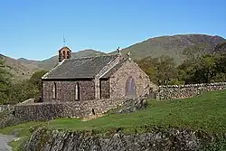 Buttermere church is dedicated to St James, and dates from 1840, replacing a chapel which was dedicated in 1507. It has a memorial plaque to Alfred Wainwright, in the sill of a window with a view of Haystacks where his ashes were scattered.[3] It is Grade II listed.[4]