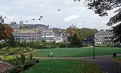 Buxton Pavilion Gardens is a Victorian landscaped public park in the spa town of Buxton in Derbyshire. The River Wye flows through the gardens, which are a Grade II* listed public park of Special Historic Interest.[1]