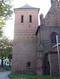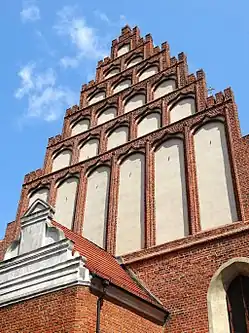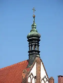 At the end of the 15th century, roofs were elevated, using pine wood, brought via the Brda river and chopped on the spot, the gable and the presbytery roofs were star-shaped and vaulted. At the same time, the church's southern steeple was attached to the main body.[3]