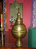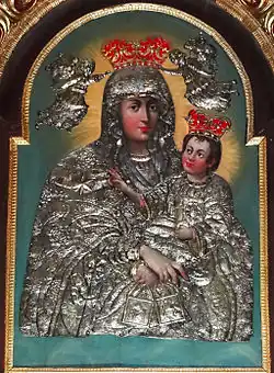 Veneration of the image dates back to the Renaissance period. In the 16th century, a rich collection of Marian votive offerings had been gathered. According to descriptions between 1712 and 1745, on a tin background, pictures were star-crowned and silver-and-gold-dressed. As a mark of thankfulness, items were hung on them: votives, coral strings, jewels, earpieces, chains, medals, scapulars, pendants or ribbons. Two magnificent votives contributed to the city's renown. One of them, donated before 1745 and displaying Bydgoszcz's coat of arms, contained a ritualized image of the Mother of God.[3] The majority of the votives offered between the Partition period and the end of the 18th century were dedicated to the support of the Kosciuszko Insurrection.