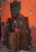 The history of the cult of the image is related to the presence of the Carmelite Monastery in Bydgoszcz since 1397, whose pastoral activity was centred on conducting Marian services and the promotion of religious confraternity.[18] An important element of the Carmelite service was the cult of the scapular as a protection against damnation. It was introduced after a vision received by Saint Simon Stock in 1251, in which Mary is said to have appeared and given him the Carmelite habit, the Brown Scapular, which several Popes confirmed as a Carmelite privilege.[19] In 1470, in the Carmelite Church was created the Brotherhood of Our Lady of the Scapular, after having received approval by Father Bernard, head of the Czech-Polish Carmelite Province. The Brotherhood had a structure, closely mirroring the hierarchy of the Carmelite Order: elders carried the title of priors and sub-priors, the fraternity included seven consuls, whose task was to settle organizational matters, two arbitrators who solved disputes, and two settlers to settle legal problems. There were no titular dignitaries, each member being committed to specific actions.[18] Noble patrons were members of the Voivode or the Castellan of Brzesko-Kujawski, Bydgoszcz Starosta or were representatives of the country nobility.[19] The selected noble supporters were approved by the monastery, while the clergymen were always Carmelite preachers. Upon entering the fraternity, the brother received his scapular.[18]