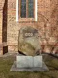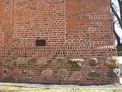 Part of the church was built of brick, allowing the synod of the diocese of Włocławek to take place here in January 1425. In addition, the northern wall of the present church still bears brick traces of windows and a portal. In 1425, a fire destroyed some elements of the building, probably the wooden roof, while archived city documents were also lost during this disaster, according to Wojciech Łochowski's chronicles.[3]