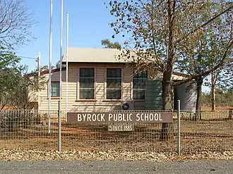 14. ^ "Byrock Public School up for sale". ABC News. September 2009. Retrieved 4 March 2012.