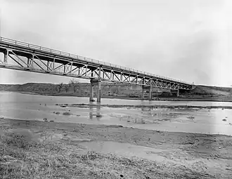 The CKW Bridge over Powder River is a Pratt deck truss bridge near Arvada, Wyoming, which carries US 14/US 16 across the Powder River. The bridge was built from 1932 to 1933 by the W. P. Roscoe Company. The 452-foot (138 m) bridge has three continuous main spans and two shallow approach spans. It is the only continuous truss bridge still in use on a Wyoming road and one of only two deck truss bridges built on a major highway.[2]